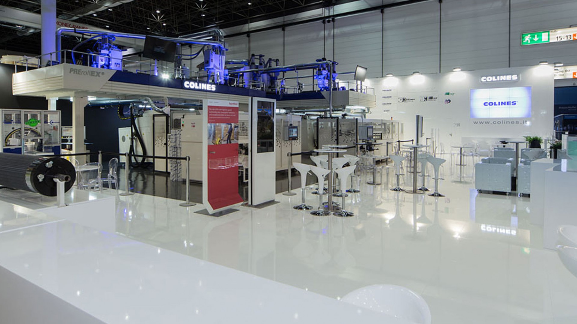 The accurate study of the space was fundamental to make this booth efficient. With mezzanine and divided into offices, welcome and dining area, the booth is completed by a big specifically designed counter with milled details.