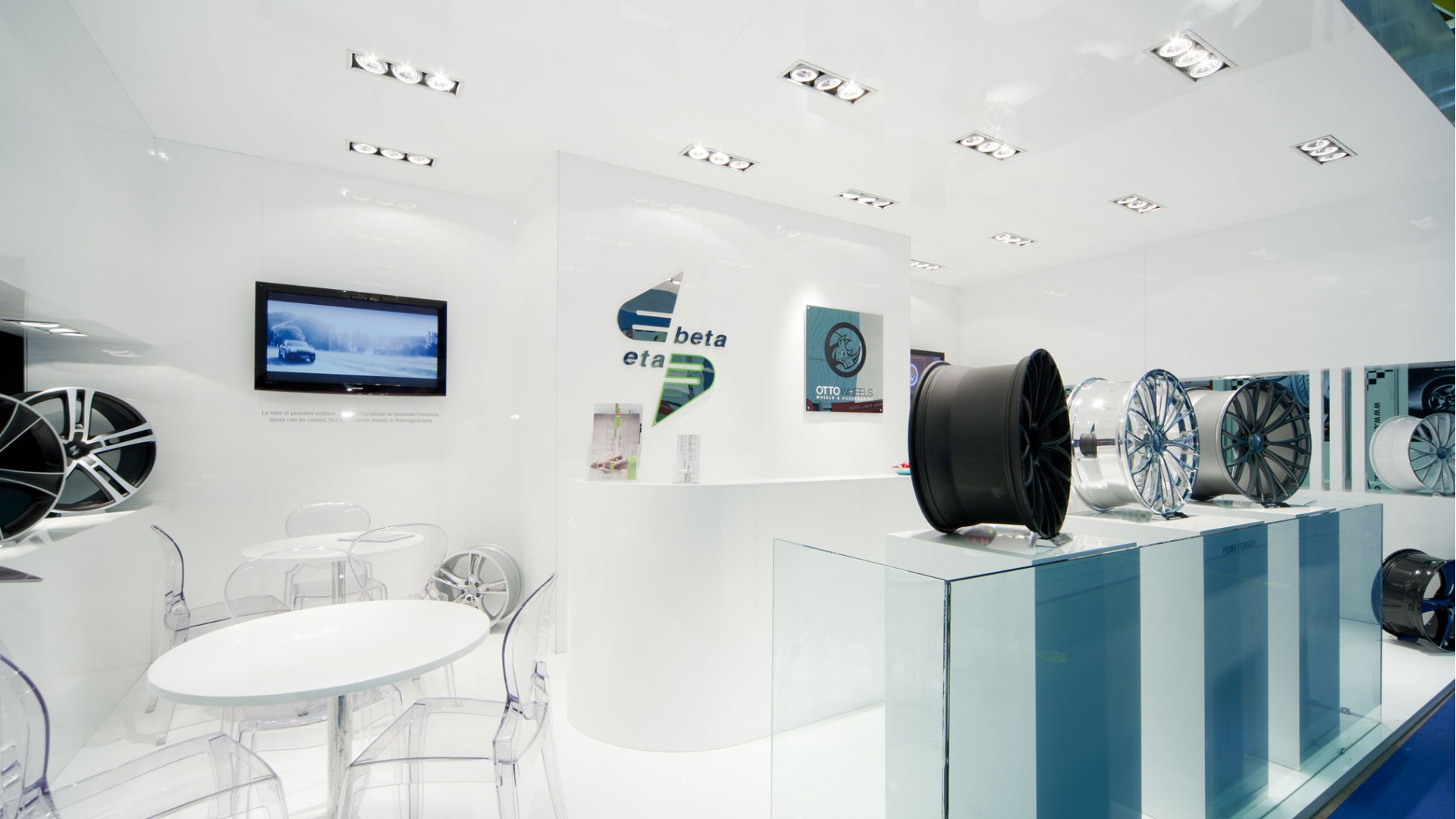 A dynamic and unusual structure acts as treasure chest for the booth. Closed but hanging, it makes the design engaging and creates an enclosed space, almost as a separate environment, in which the visitor can fully immerse himself.