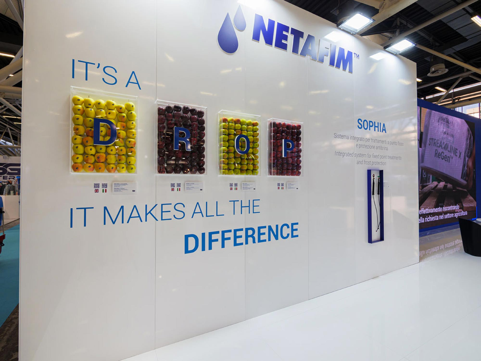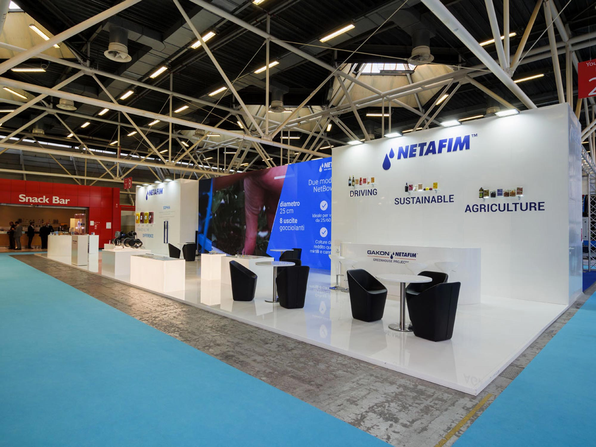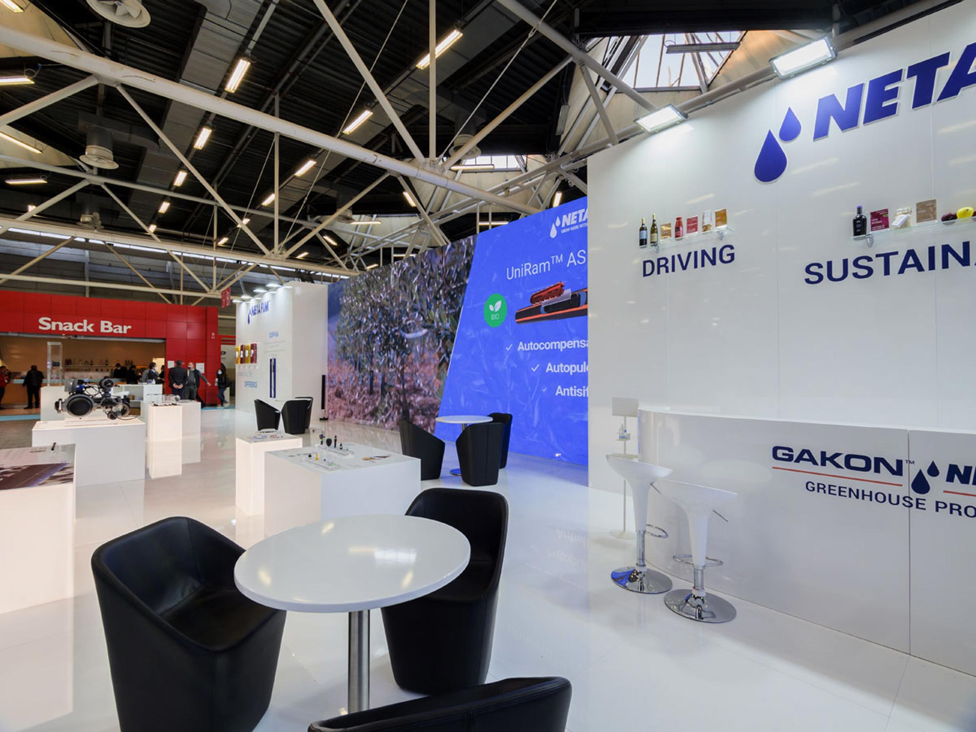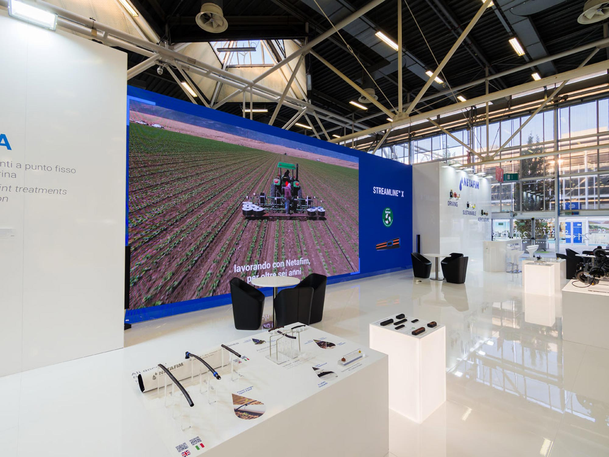 An innovative, dynamic and convivial environment. At the center of the scene, a large LED wall acts as the background, immersing the visitor in the places and concepts designed for the event. Throughout the entire area, lighting and custom-made exhibition bases were created to allow the customer to exhibit his products and divide them into categories.