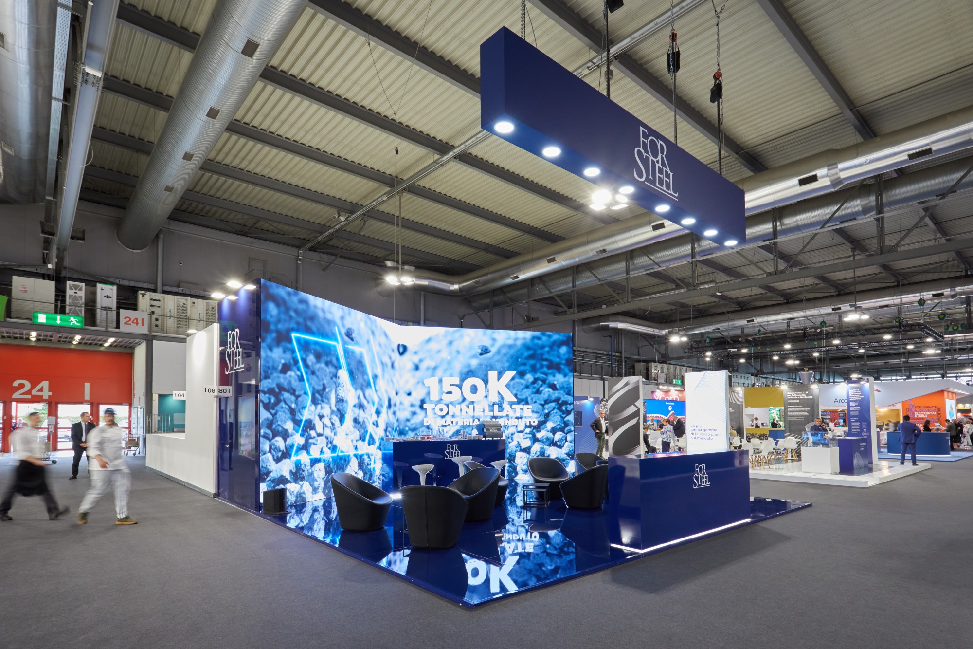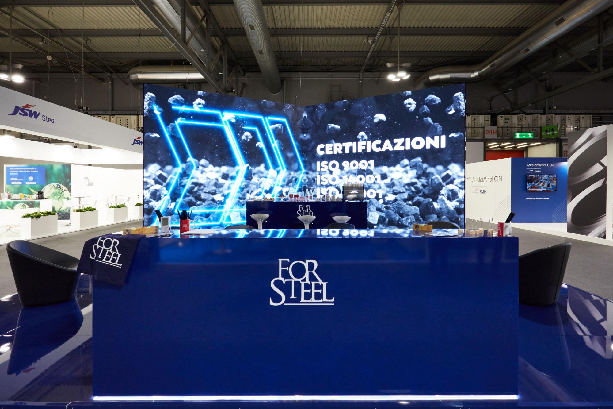 Booth awarded as “most friendly” by Made in Steel for the characteristic presence of a LED wall, whose installation becomes an invitation to the entrance of the visitor, who feels welcomed.