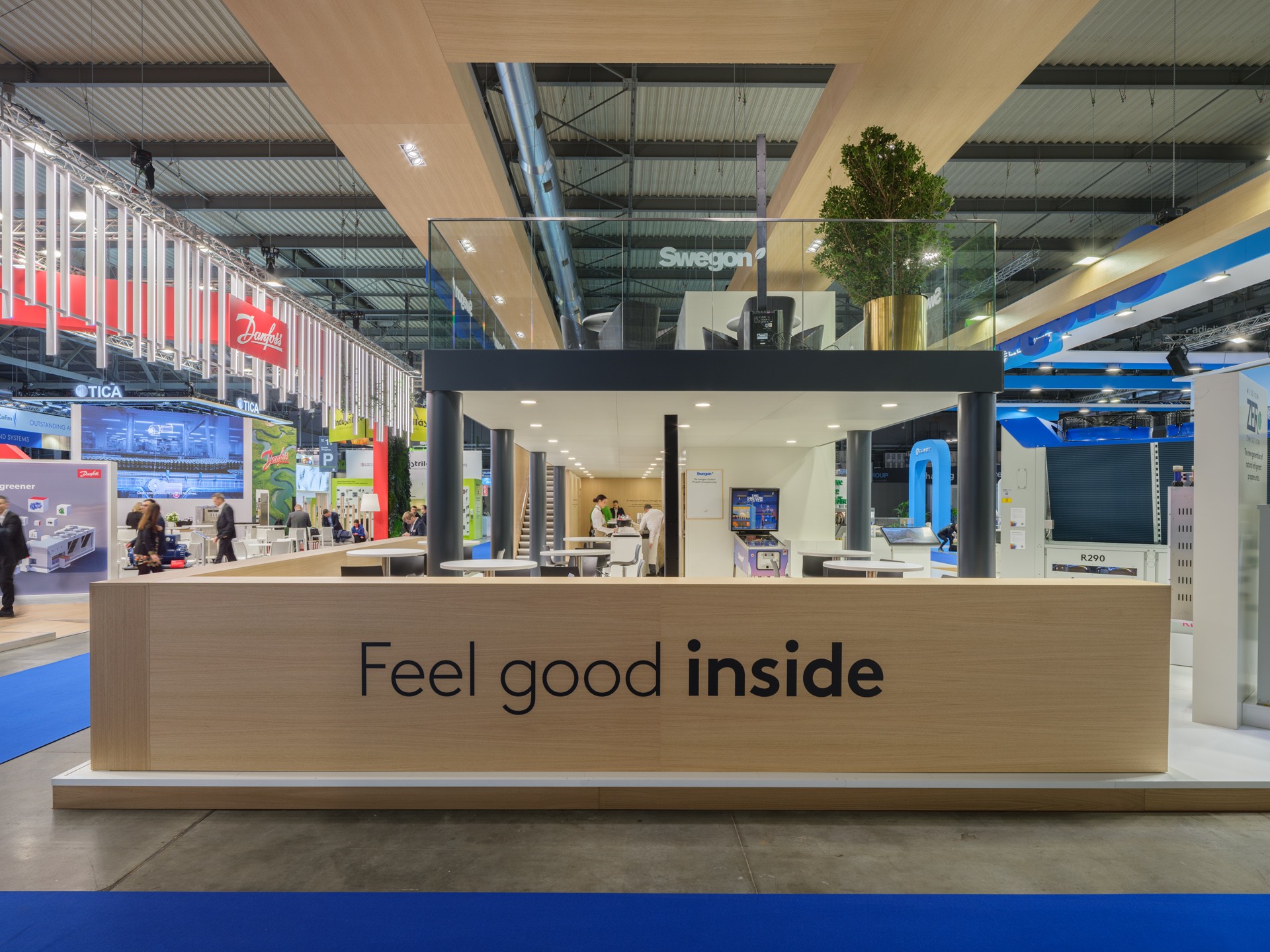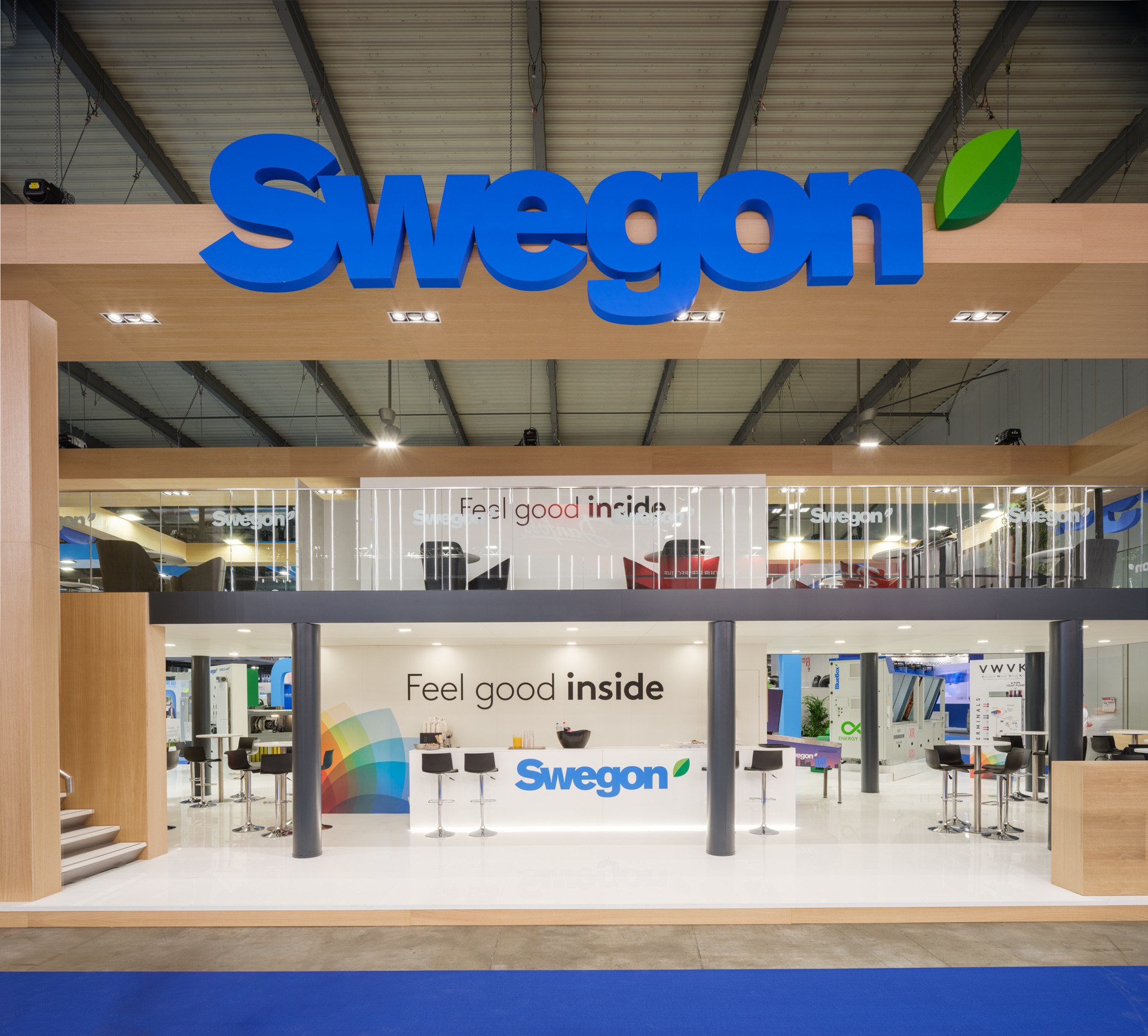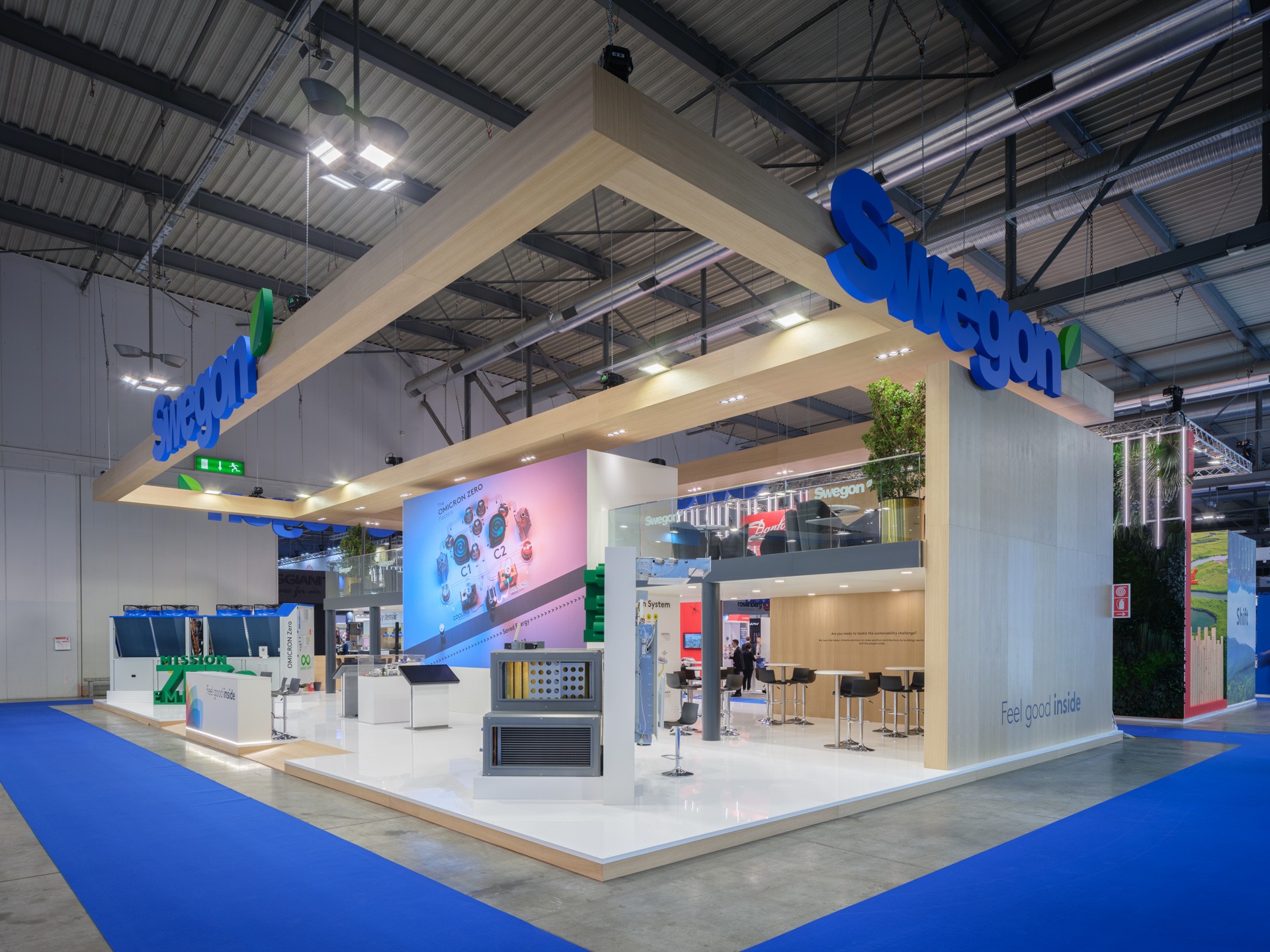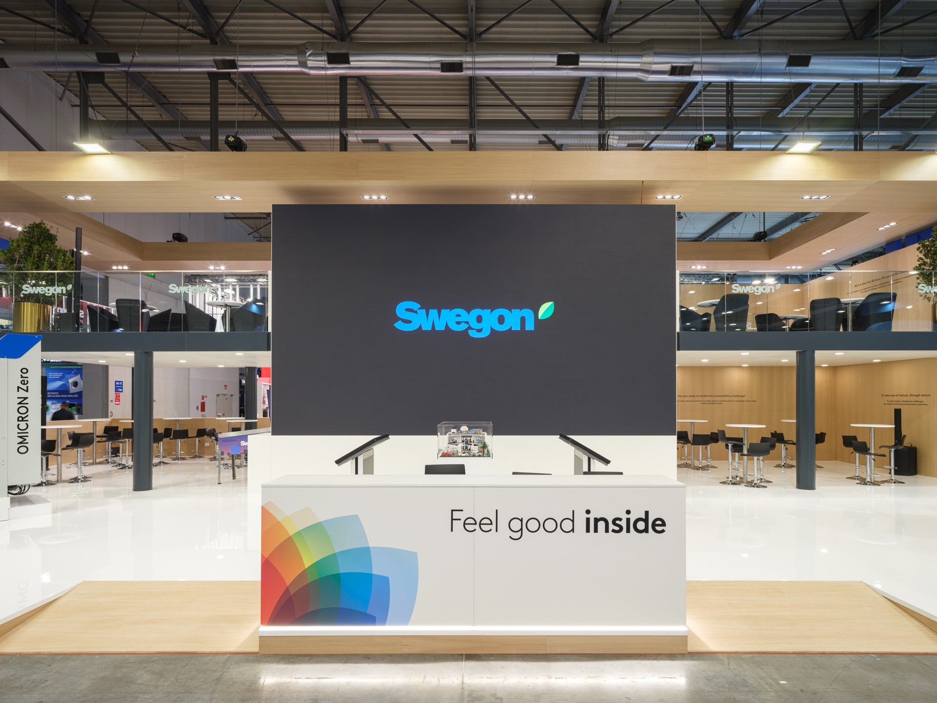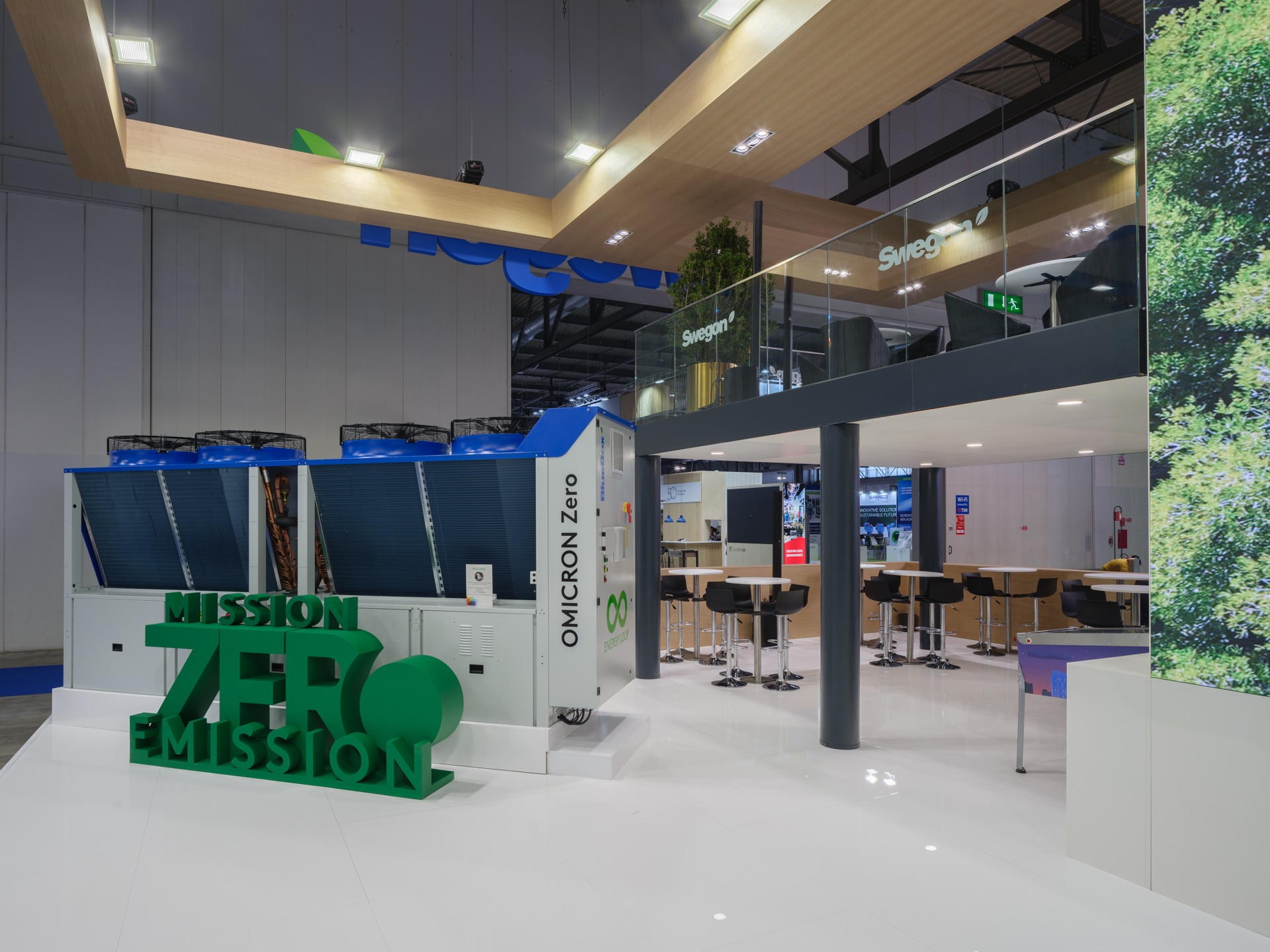 A large two-storey stand, designed to optimize space and highlight the brand identity in every detail. Modern design, distinctive colours and innovative technological solutions create a welcoming and functional environment, perfectly in line with the brand’s values and image