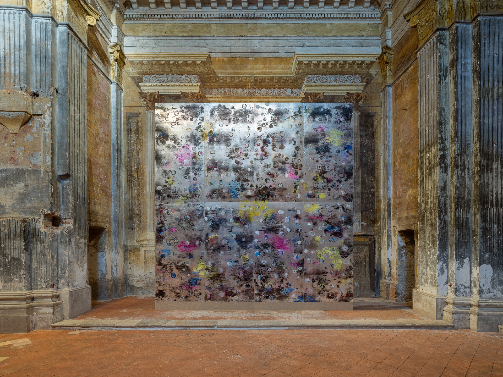 Collaborating with the artist Servane Mary, we organized the setup of her exhibition "Glitches" inside the Church of San Carlo. For the first exhibition of the San Carlo project, we created structures to support her works, resulting in a majestic and immersive installation of paintings. Our approach involves working closely with artists, helping them realize their vision and create a space that best showcases their works.