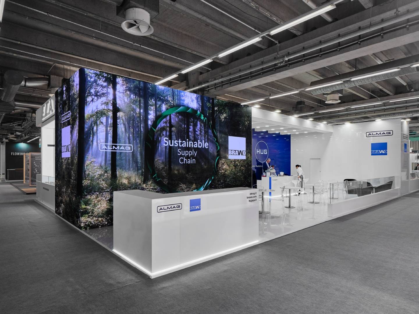 At ISH 2025, FORM. The Creative Group brought the brand’s vision to life with a bold, high-impact space designed to maximize visibility on an international scale. The stand, featuring ALMAG’s distinctive white and blue colors, is characterized by lacquered surfaces that convey elegance and attention to detail. A large corner LED wall captures attention with dynamic content, highlighting the innovation and quality of the products.