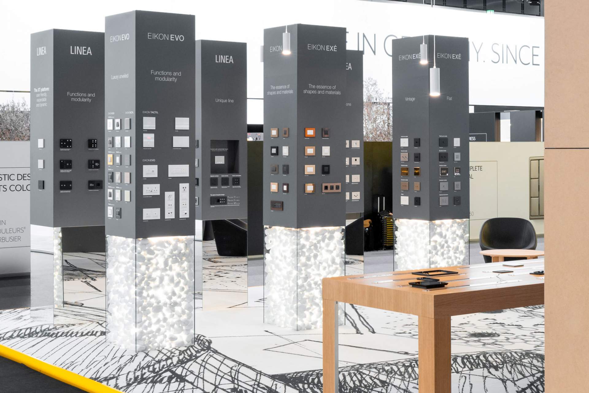 Exhibition stands are designed to enhance products with exclusive showcases, integrated into an environment that reflects the essence of the brand.